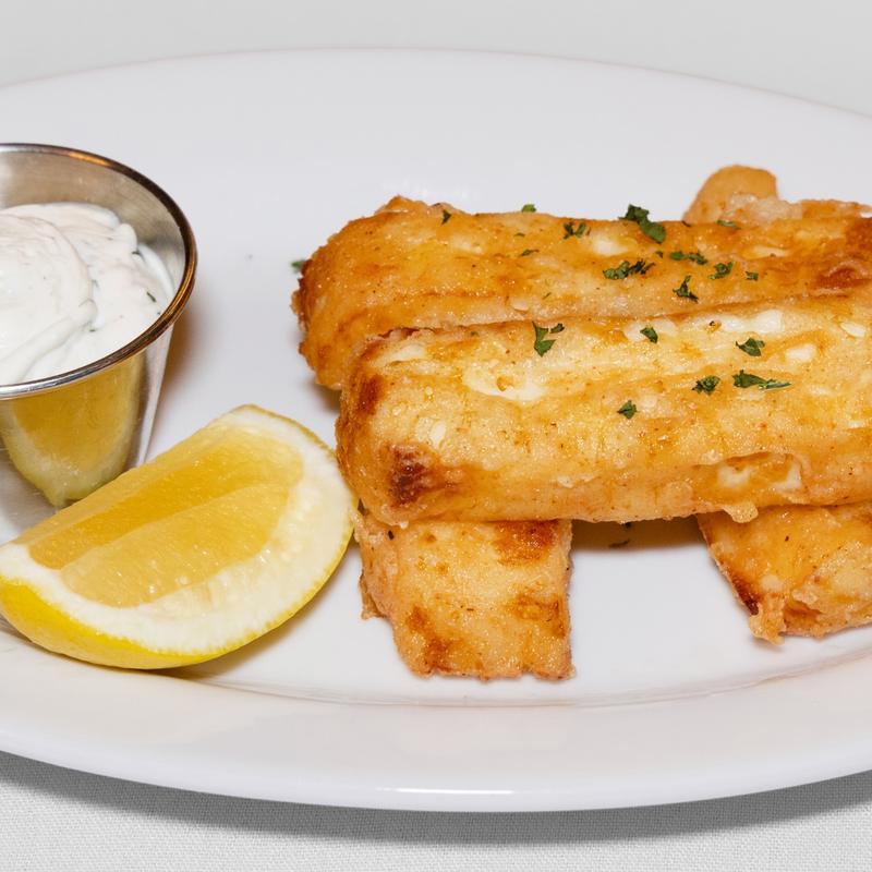 Golden pan-fried Greek cheese, sizzling hot