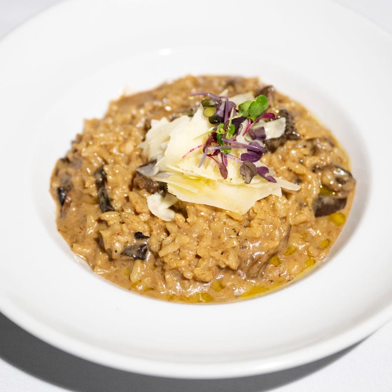 Risotto with mixed mushrooms and truffle oil.