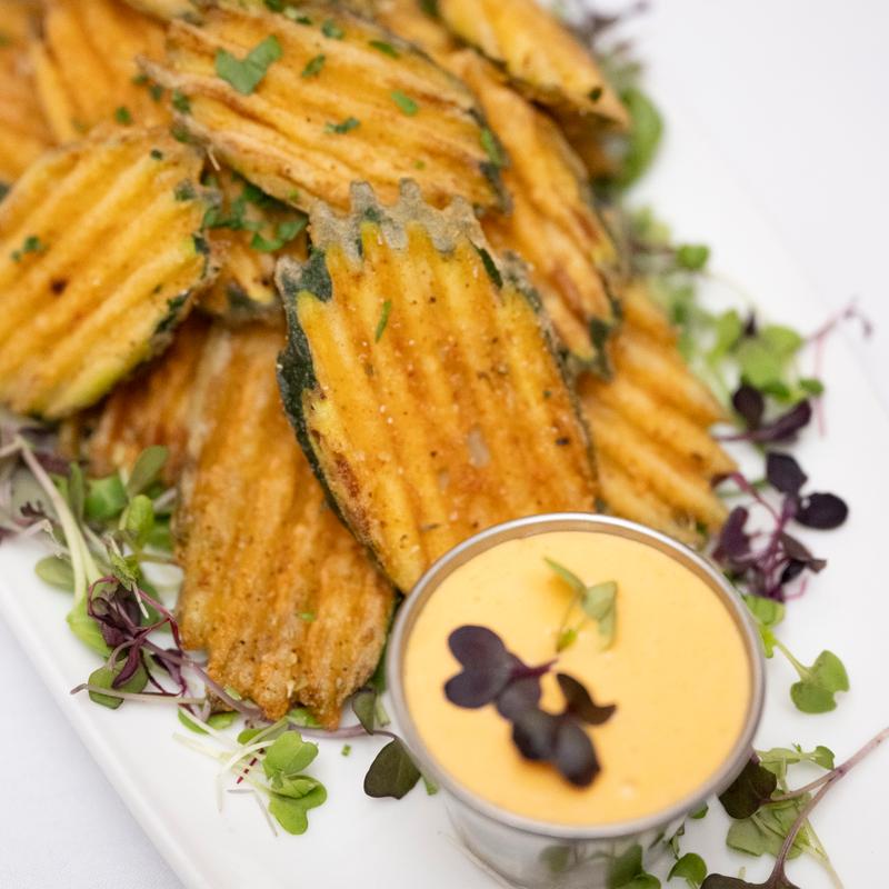 Crispy zucchini served with cool tzatziki dip